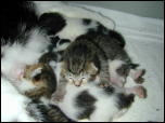 They're getting nice and fat in these pictures. One of them has opened her eyes. Their tummies are nice and round, and their umbilical cords have fallen off.